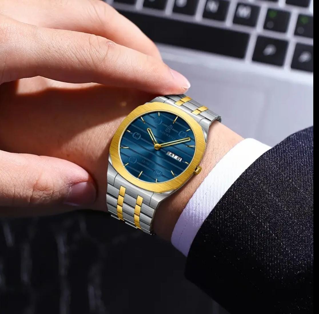 The Gucci Double-Date Coin Watch makes a bold statement with its iconic coin-edged design and dual-date functionality. Perfectly balancing elegance and everyday practicality, it brings designer prestige right to your wrist.