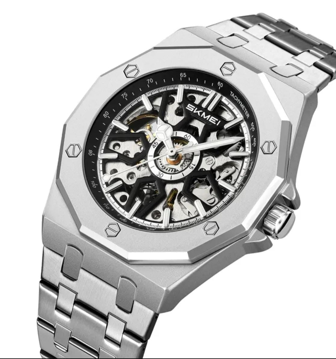 The SKMIE Automatic Watch blends mechanical craftsmanship with everyday style. With its open skeleton dial, sturdy stainless steel case, and self-winding movement, this watch isn’t just for checking time — it’s for appreciating it.